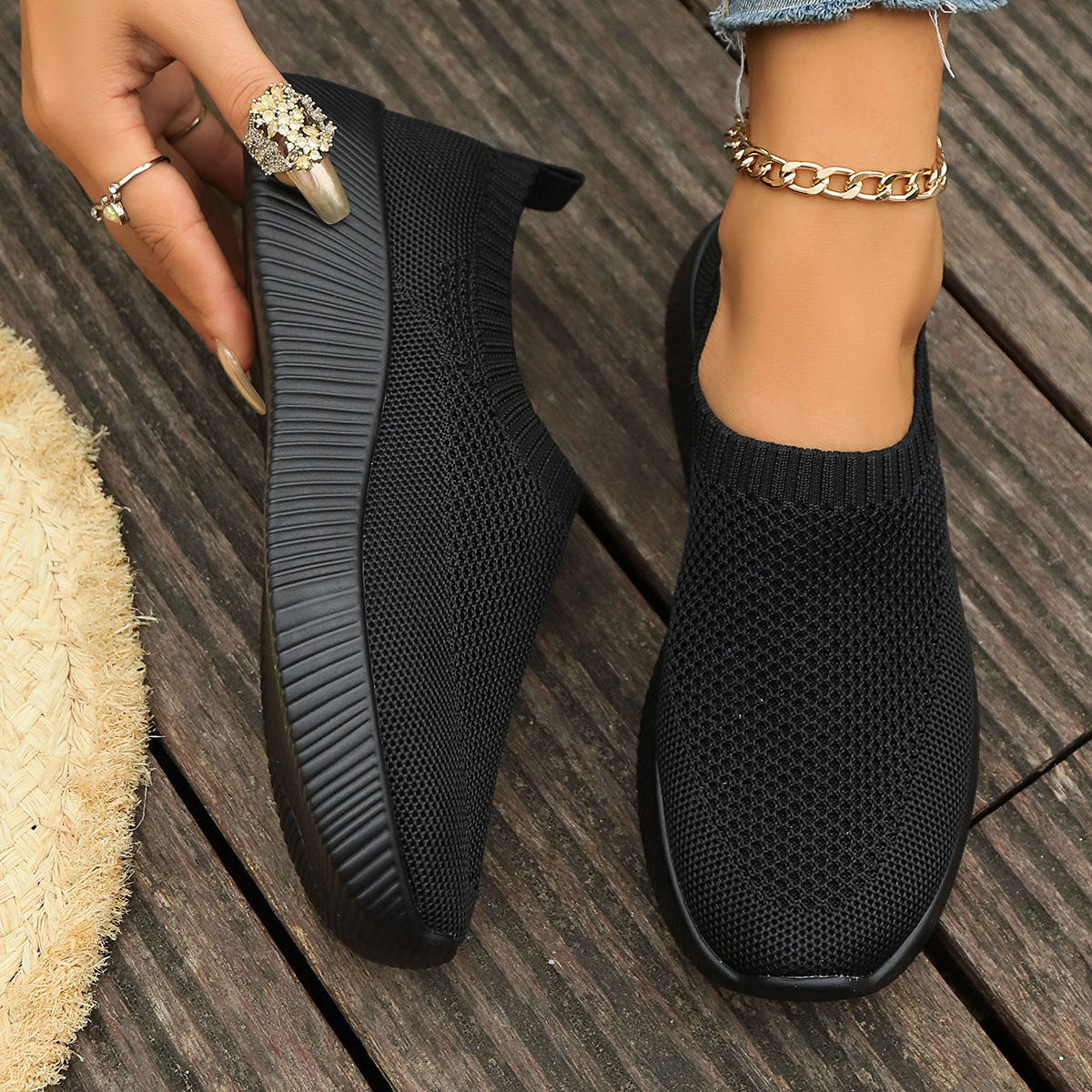 Ribbed Platform Knit Sneakers – Slip-On Design with Arch Support for All-Day Comfort